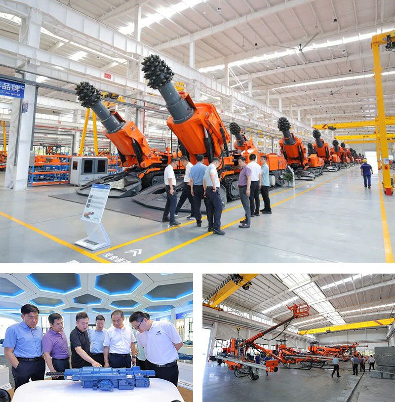 中煤矿建集团领导一行先后参观了公司的生产车间、研发中心等核心区域,重点考察了掘进机、掘锚机装配线及核心部件加工车间。销售总监李家林详细介绍了各类产品的生产流程、核心技术以及在煤矿的实际应用情况。
