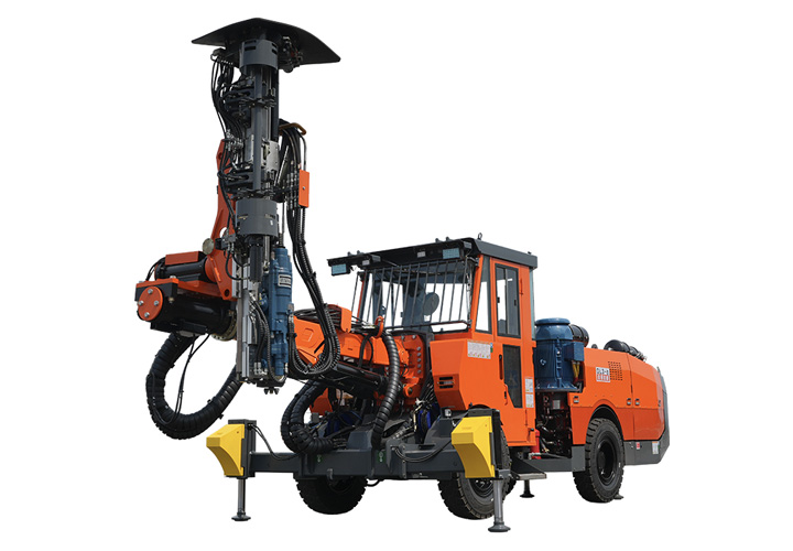 DL3-b矿用液压采矿钻车(又称深孔凿岩台车或采矿台车)是一款悬臂式中深孔采矿凿岩钻车,专为地下矿山或隧道中深孔凿岩钻孔而研发,常在地下非煤矿山采矿中平行和扇形孔作业,也能满足锚索孔凿岩施工,全液压凿岩,适应孔径64-76-89mm,一次钻孔深度20米,全柴动力供行走,铰接式底盘、四轮驱动、爬坡达14°,满足各巷道间的灵活转场。在地下矿山生产中深钻孔作业,满足钻凿垂直、扇形以及平行布置中深孔施工,采用全液压驱动凿岩,根据用户需求可选择915mm、1220mm、1830mm等规格钻杆,且配有一个储杆仓。柴油机四轮驱动轮胎底盘行走,爬坡14°。