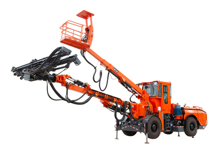 DS8钻注锚一体机能实现隧道锚杆施工钻孔,塞锚杆、注浆全机械一体化作业,设有1个锚杆钻臂及1个高空作业平台臂,其机械化程度高。工作范围广、作业速度快等特性,应用于铁路、公路、水利工程、国防等隧道锚杆施工。柴油机供行走,速度12Km/h,爬坡能力强:采用直接液压控制,拥有自动防卡钎功能,可旋转伸缩式钻臂,能满足掌子面、顶邦、侧邦等任何角度锚杆施工。设有车载搅拌及注浆系统,满足注浆需求,采用封闭式驾驶室作业,环境舒适度好,多功能锚杆机头设有多种锚杆类型选择。