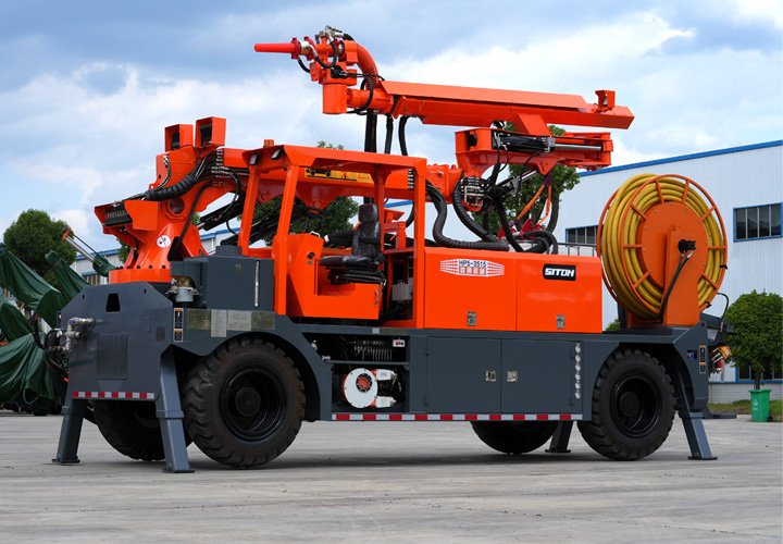 HP5-4016⼯程桥式湿喷台⻋(⼤⽅量)可选配⼤型空压机,四轮四转向,湿式驱动桥,极⼤地改善了隧道内部混凝⼟喷射施⼯⼈员的⼯作环境,提⾼了施⼯效率,减少了混凝⼟消耗量,切实保障施⼯质量,双动⼒⼯作系统,更低碳排放,更切合环保理念。是⽔利⽔电、铁路、公路等隧道施⼯的更佳选择。HP5湿喷台⻋⼀次性平⾏作业⼯作范围宽26mx⾼15m巷道,每⼩时可喷40m³,⾏⾛在20°坡度内、可喷顶邦、侧邦、底板、掌⼦⾯任意位置⽆死⻆喷射;该机作业机构采⽤全液压驱动,柴油动⼒⾏⾛,⾃动掺量速凝剂精度⾼。
